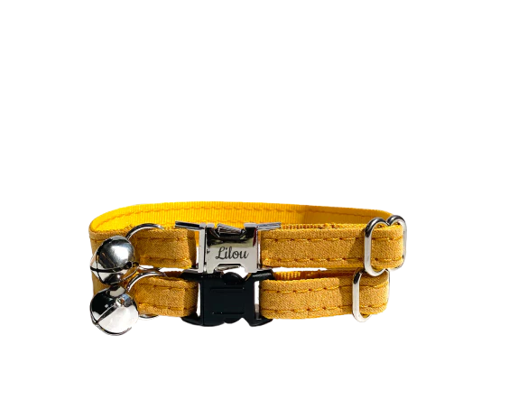 Collier Chat Personnalisé en Coton Jaune